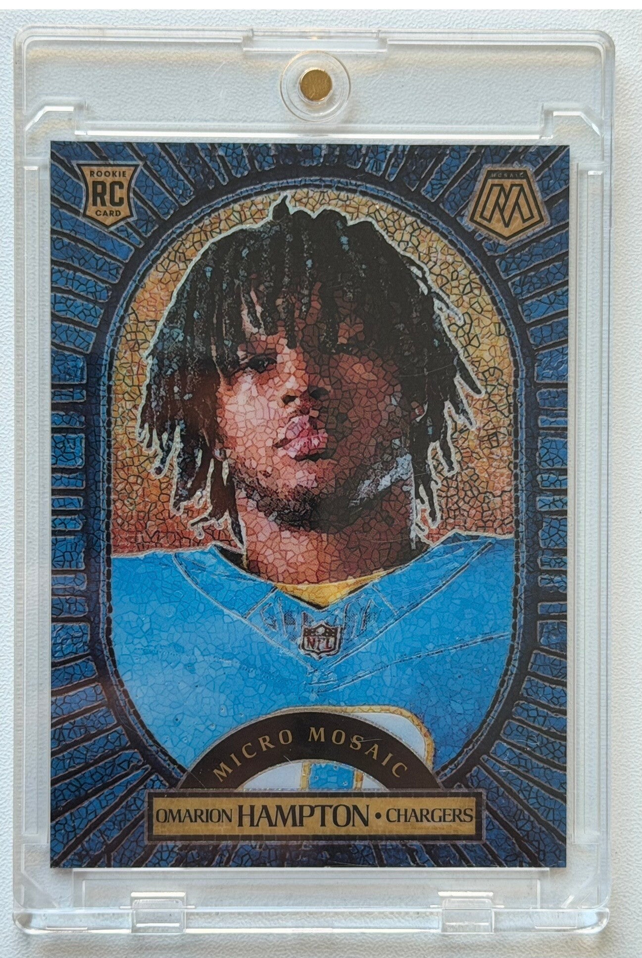 - 10. NFL 2025 Mosaic #11 Omarion Hampton Micro Mosaic "Rookie Card" "Case Hit"- Raw